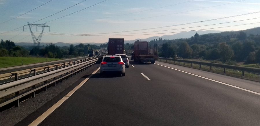 Redni uporabniki slovenskih avtocest smo dnevno priča bizarni vozniški kulturi tako osebnih vozil, kot tudi tovornih vozil, nemalokrat pa se med vožnjo naleti na trenutni prometni zamašek, zaradi prehitevanja tovornih vozil. Tako početje, kjer tovorno vozilo prehiteva tovorno vozilo na dvopasovnici avtoceste je sicer po zakonu kaznivo, a zakonsko predpisana globa 300 € zaradi pomanjkanja policijskih patruljnih enot na avtocesti ostane nepobrana.