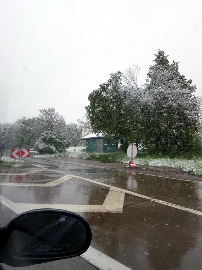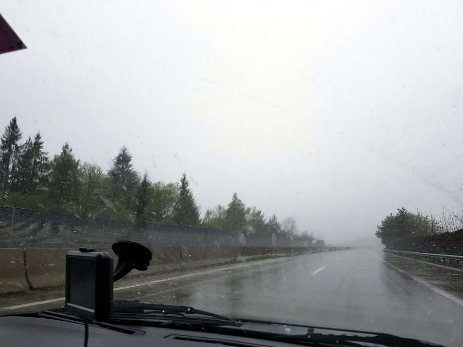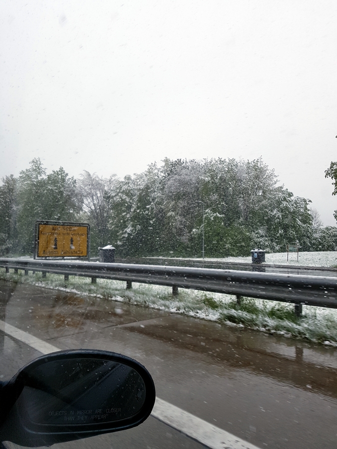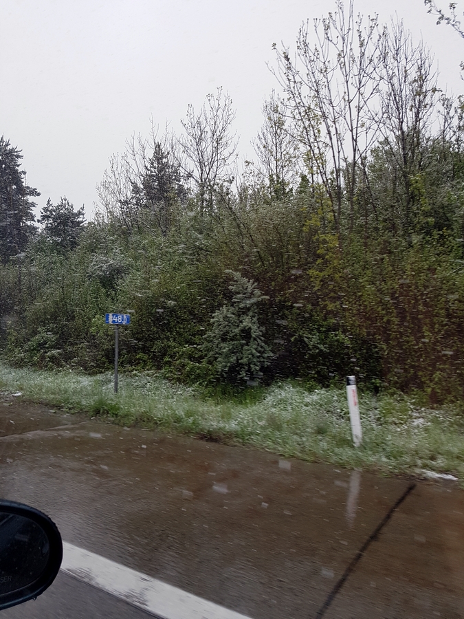 Arktična ohladitev, ki je te dni zajela Slovenijo, je danes dokončno pokazala svoje zobe. Neobičajna ohladitev pa je predvsem na severu države prinesla za mesec Maj precej nenavadno pošiljko snega. Naša ekipa je na poti iz Avstrije ujela nekaj posnetkov, iz katerih je razvidno, da se je sneg pri naših severnih sosedih dodobra oprijel podlage, aktivirali pa so tudi zimske, posipne službe.