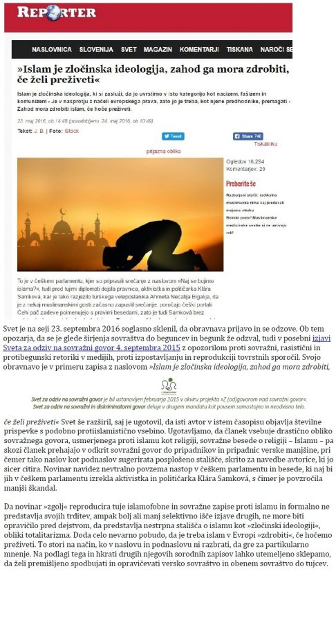 Primer sovražnega in primer nesovražnega govora