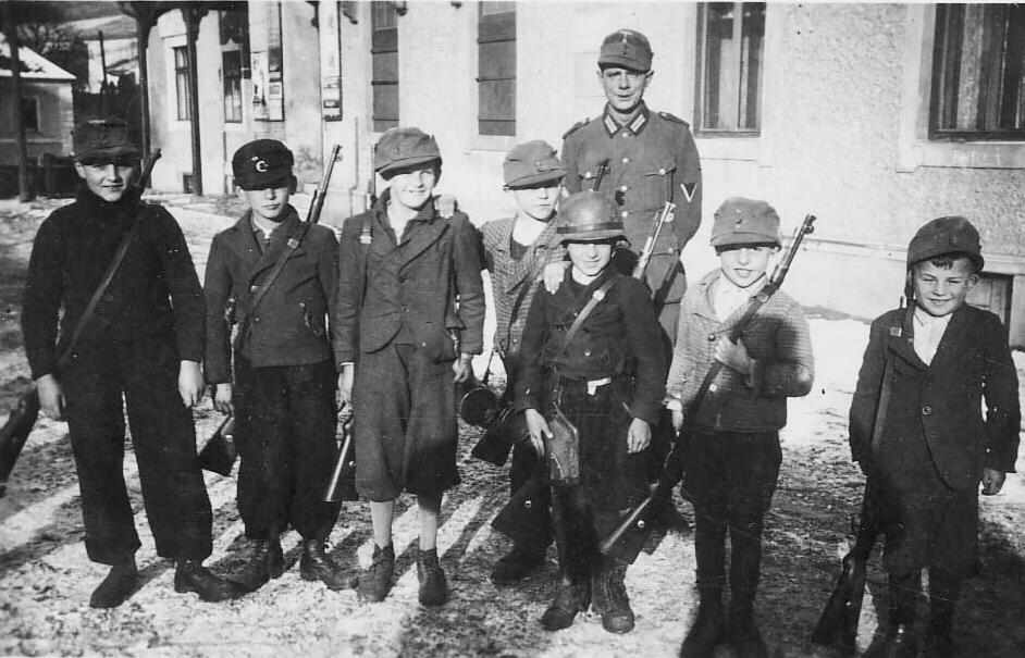 V zadnjih dneh pred padcem Berlina so mesto in Hitlerjev bunker pred napredovanjem zaveznikov varovali otroci vojaki. Posnetek Hitlerja, ki pred bunkerjem odlikuje otroke, ki so varovali njegovo rit pred zavezniki, pa je dokončno razgalil bedo in sprevrženost nacional-socializma in nacistov.