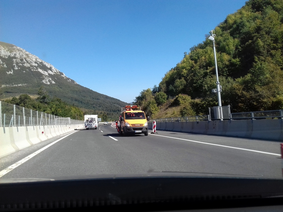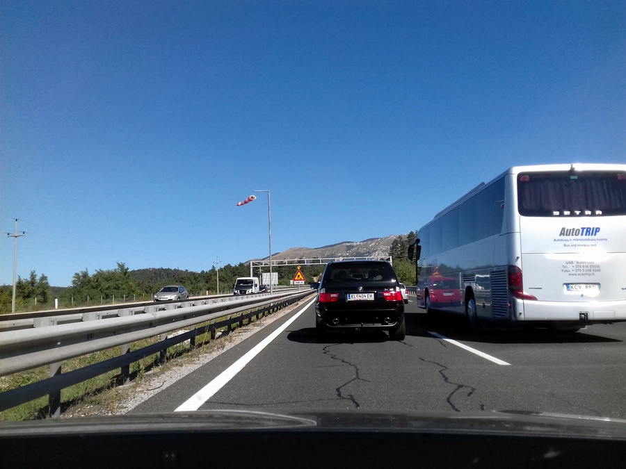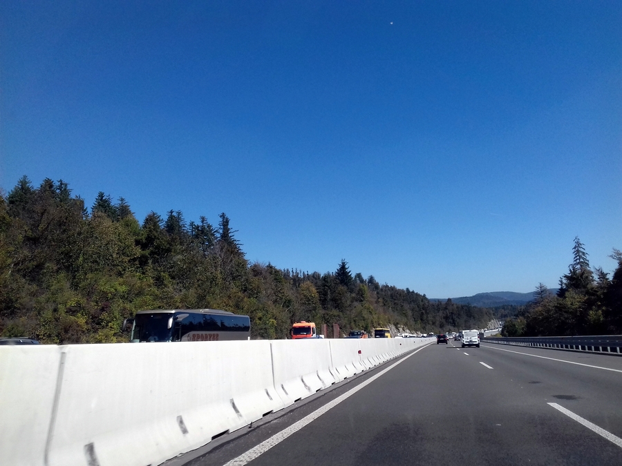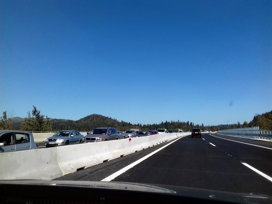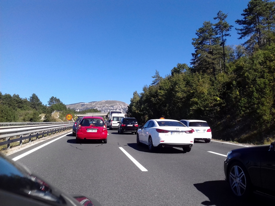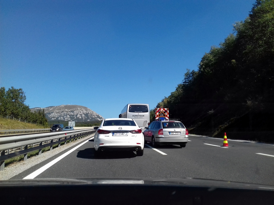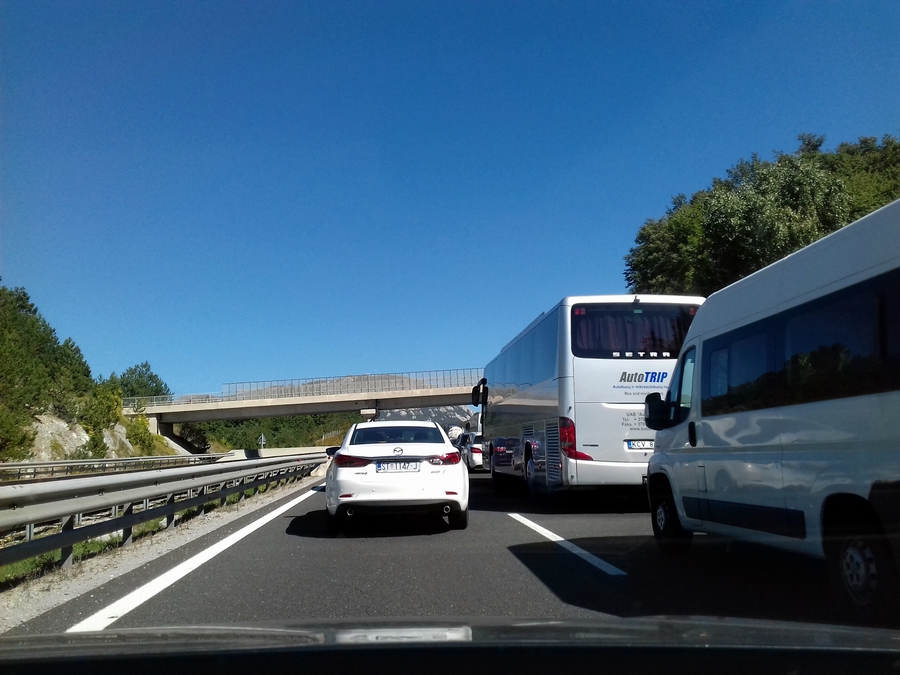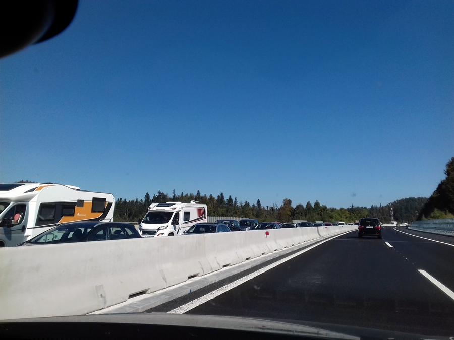 Proti Kopru pa so se prvi zastoji začeli pojavljati že takoj za delovno zaporo v Postojni, kolona vozil, katero si lahko ogledate v spodnji galeriji pa se je vila preko viadukta Ravbarkomanda, po poročanju uradnih cestnih portalov, kar 7 kilometrov.
