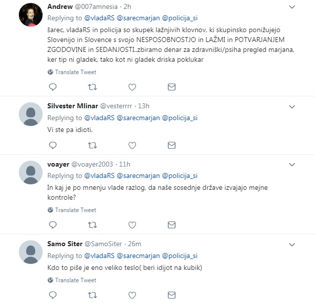 Gospod Marjan Šarec, Bojan Poklukar, Miro Cerar, zaprite južno slovensko in balkansko schengensko mejo, ali pa nehajte zavajati slovenski narod in odstopite iz svojih položajev. Saj ravno vaša nesposobnost vodenja države, ne samo sramoti Slovenijo v mednarodnih očeh, pač pa vas je večina Slovenk in Slovencev, ki ni glasovala za vas, že pošteno sitih.