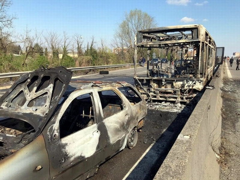 Policija je avtobus skušala ustaviti s cestno blokado, vendar je Senegalec namerno trčil vanje in skušal nadaljevati vožnjo. Ko mu to ni uspelo, je predhodno v bencin namočen avtobus tudi zažgal, sam pa skušal pobegniti. Policija je uspela skozi zadnja razbita okna rešiti vse otroke in šolsko osebje, 14 oseb pa je utrpelo poškodbe dihal zaradi vdihavanja dima.