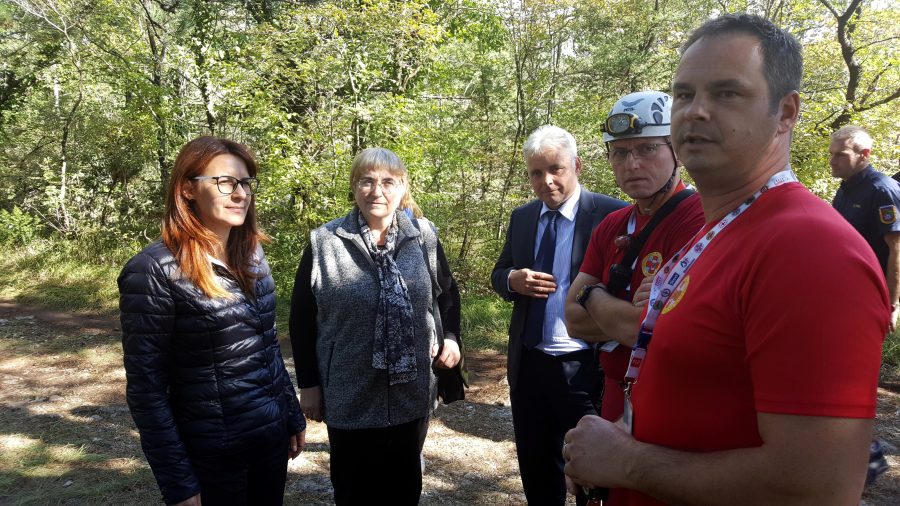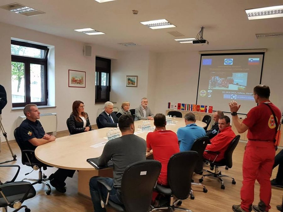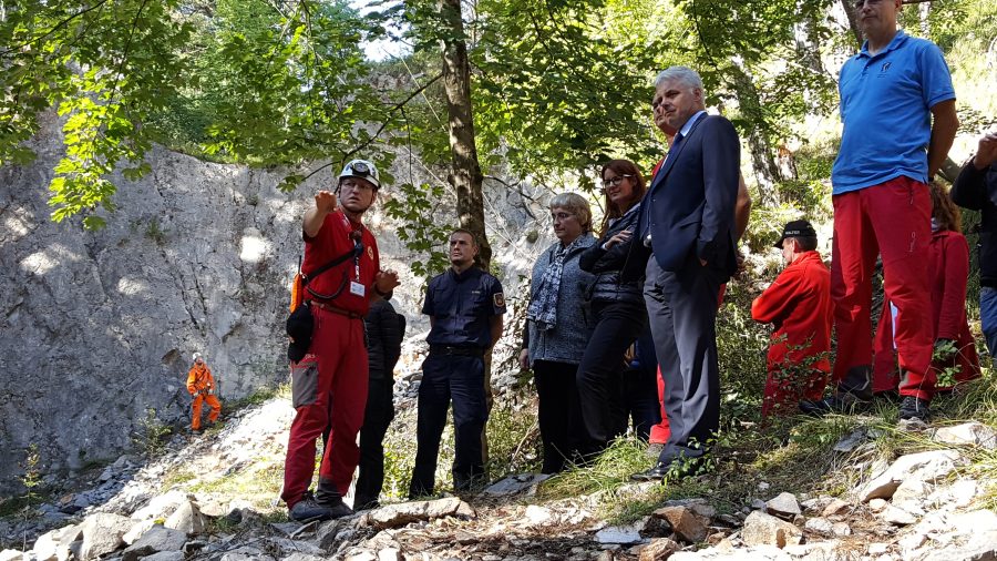 Včeraj je v Sežani potekala mednarodna jamarska reševalna vaja CRT 2017, že deveta v okviru usposabljanja Pobude za pripravljenost na nesreče in njihovo preprečevanje za Jugovzhodno Evropo (DPII SEE). Znotraj te pobude URS za zaščito in reševanje v sodelovanju z Jamarsko reševalno službo pri Jamarski zvezi Slovenije izvaja Program temeljnega usposabljanja za jamarske reševalce iz desetih držav. Predstavitev vaje je potekala v Izobraževalnem centru za zaščito in reševanje v Sežani, praktični del pa so izvedli na plezališču pri lipškem kamnolomu, v neposredni bližini centra.